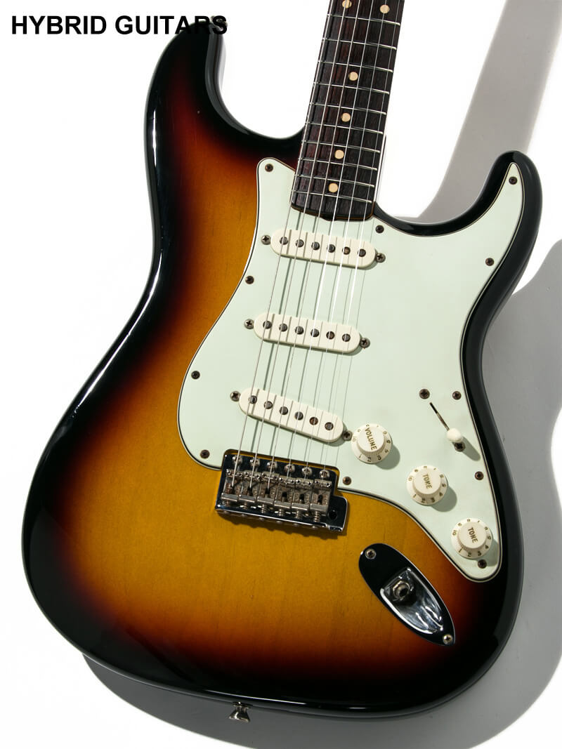 本機はボディにAlder、ネックにMaple、指板はRosewoodを使用しています。ネックシェイプはFender Custom Shop 1960 Stratocasterでよくある厚みのCシェイプで、1961年製Stratocasterと同様に指板はラウンド貼りです。ピックアップには、伝説的なピックアップ職人であるAbigail YbarraがハンドワウンドしたFender Custom Shopオリジナルピックアップを搭載しています。