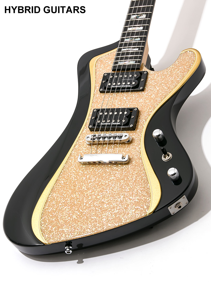 ベースのレギュラーモデルとして存在するSTREAMを基本に製作されたギター、GK-102 STREAM-Gです。ESP設立40周年の年にあたるアニバーサリーイヤーのExhibition Limitedです。Exhibition LimitedはNAMM Showなどの特別なタイミングで製作されるESPの最上級ラインです。一本物だからこそできる特殊なインレイワークやボディー加工が施されるなど特別な個体として製作されます。本機のボディートップには本物の貝を砕いた特別な加工が行われています。キラキラと輝く貝は非常に立体的で美しい仕上がりです。