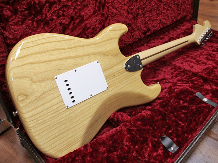 Fender Japan ST71/ASH NAT/Mです。仕様はアッシュボディー、1Pメイプルネック、ラージヘッドの70'sタイプです。また、70'sタイプですのでネックジョイントも3点止めでペグもFキーです。ネックシェイプはFender 70'sタイプによくみられるやや薄めのUシェイプです。