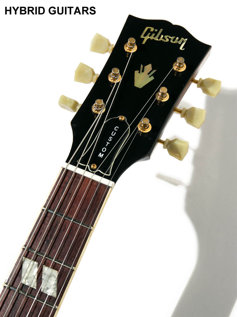 ES-345は、ES-335の上位機種として1959年に発売されたモデルです。ES-335がシングルボディバインディング、ドットインレイ仕様だったのに対し、ES-345は3プライのボディバインディング、ダブルパラレログラムインレイが採用されるなど豪華な仕様です。更に、ES-345はバリトーンスイッチを搭載しています。これは電池を使用しないパッシブのローカットフィルターで、ローカット具合を6段階で切り替えられます。箱モノ特有の太く甘いトーンから低域をカットすることで、スッキリとしたサウンドも出すことができ、ES-335特有のサウンドに厚みが出すぎる問題やバンドアンサンブルに埋もれがちになる時に便利なサウンドバリエーションです。