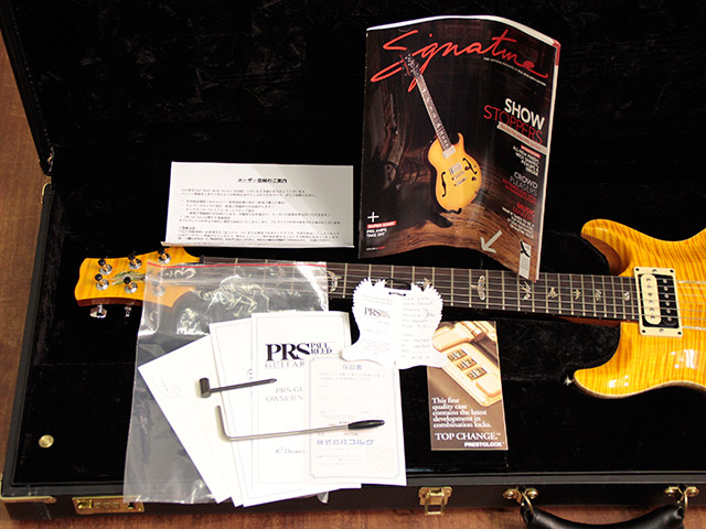 正規品、新品同様、都度使われていない極上SantanaIIの限定品です。わずか5本のみ製作されたうちの1本です。プライベートストック級の動きのある立体的な木目が採用され、黒々とした指板も良質さをうかがわせてくれます。木目、状態、付属品どれをとっても申し分のないギターです(木目は写真よりも実物の方が綺麗です)。人気のSantana Yellowで、この機会を逃すとなかなか手に入る機会はないかと思います。下取りの相談もご遠慮なくどうぞ!定価745,500円