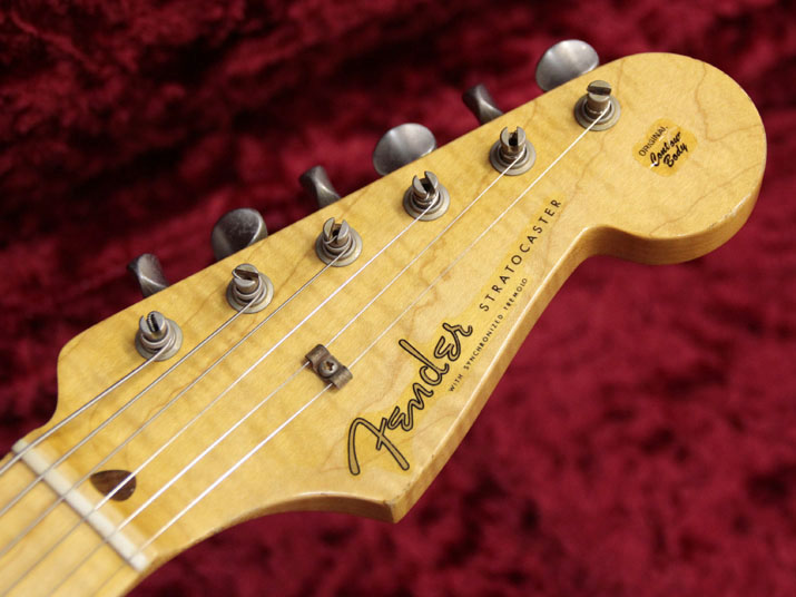 Pall Wallerは2003年にFender入社後、マーク・ケンドリックやトッド・クラウスらと共にカスタムショップでギターを制作し、2010年にマスタービルダーへと昇格しました。本機は2008年の12月に製造された個体です。仕様は1956年当時のFender Stratocasterに準じており、アルダーボディーにメイプル1Pネックです。指板Rは7.25インチでVintageと同様。フレットもVintageタイプが採用されています。ピックアップには現在は退職しているAbigail Ybarra氏によって手巻きされたFender Custom Shop Originalのシングルコイルを搭載しています。