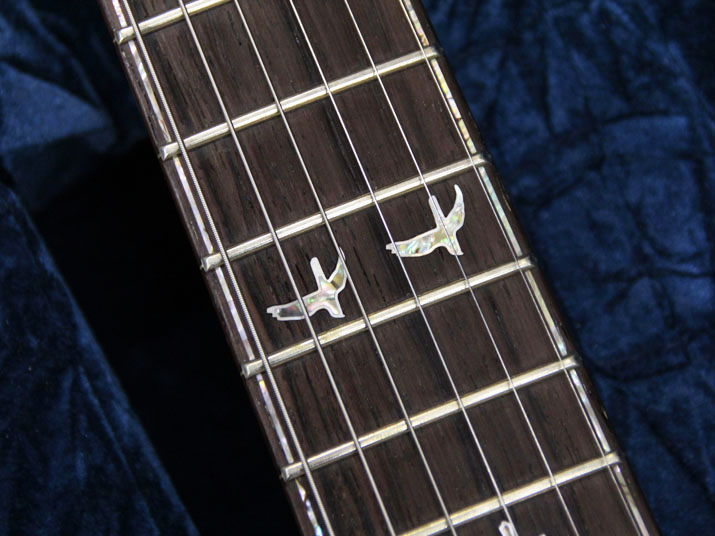 更に、30周年を記念する本機は装飾も豪華です。ヘッドストックインレイには 「30th Anniversary」の彫刻が入ったイーグルインレイが使用されています。また、このインレイとバードインレイ共に、パウアアバロンを使用しマザーオブパールで縁取りが行われています。加えて、指板とヘッドストックにはアバロンのパフリングも行われています。