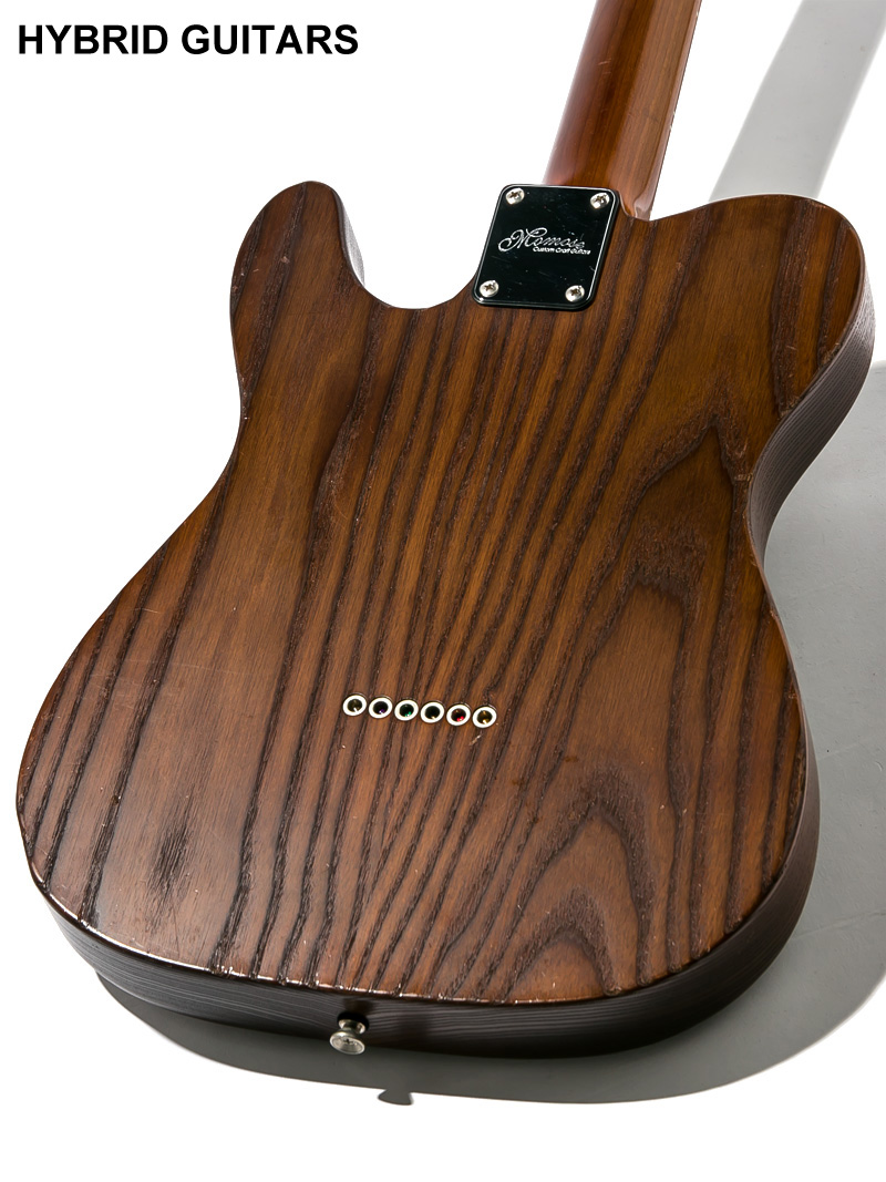 このような拘りを持ったmomoseが製作した本機のウッドマテリアルは、アッシュボディ、マダガスカルローズウッド指板、サーモウッドメイプルネックです。ネック材に使用されているサーモウッドメイプルは、高圧・高温で乾燥させる事で強制的に経年変化を促したメイプルで、熟成された木材のような仕上がりになり、安定性が高くなっています。ヴィンテージ等でもよく言われる「水分が飛び、カラッとしたトーン」が得られます。ピックアップはTWANG50 TLを搭載しています。
