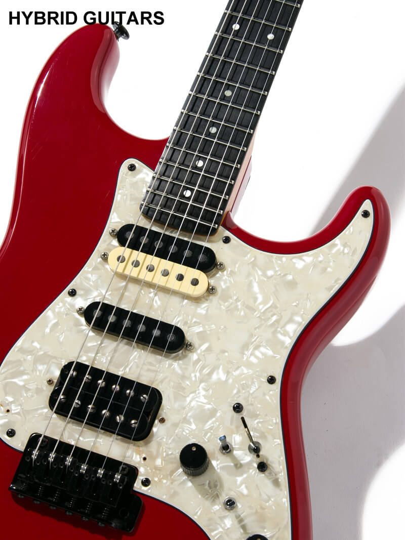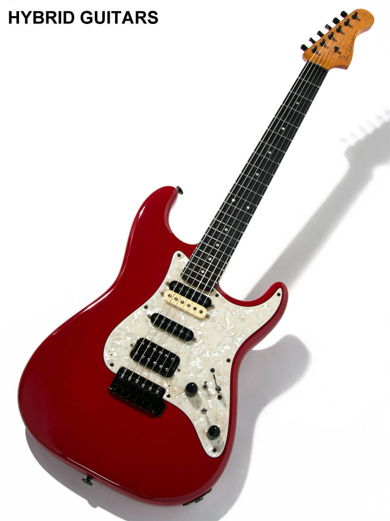 本機はボディにAlder、指板は近年なかなか見られない黒々としたEbony、ネックにはMapleを使用しています。トラディショナルなStratocasterよりもフラットな14inchの指板ラディアスを採用しています。ピックアップを4機搭載したSS-S-H配列を採用しています。ペグにはマグナムロック、ブリッジには2点支持トレモロにローラーサドルを搭載しています。