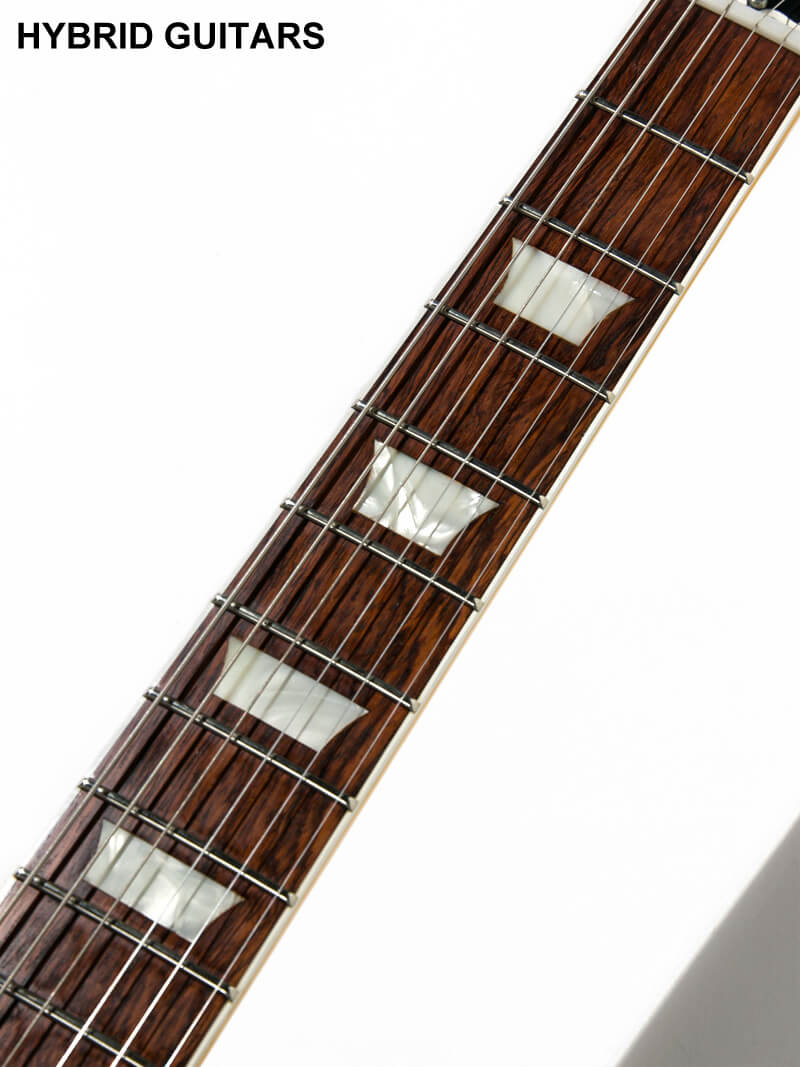 本機はボディトップにFigured Maple、ボディバックとネックにはMahogany、指板には希少でトーンウッドの王様であるJacaranda(Brazilian Rosewood)を採用しています。大変貴重なヴィンテージバーストと同様の木材を惜しげもなく使用しており、Gibson Custom ShopのMurphy LabやHistoricの1959 Les Paulを検討している方にもおすすめできる個体です。